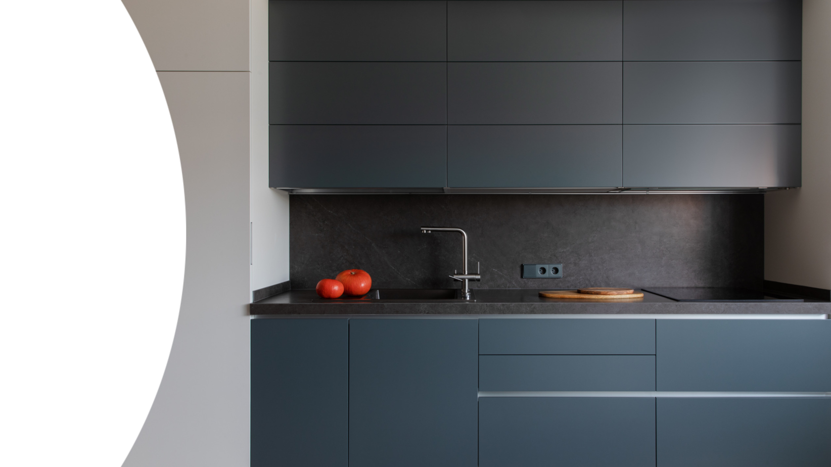 Интегрированные ручки— фрезерованное углубление продолговатой формы в торце мебельного фасада, предназначенное для захвата рукой. На фасадах верхних секций углубление делается в нижнем торце, на фасадах нижних секций и выдвижных ящиков — в верхнем торце.